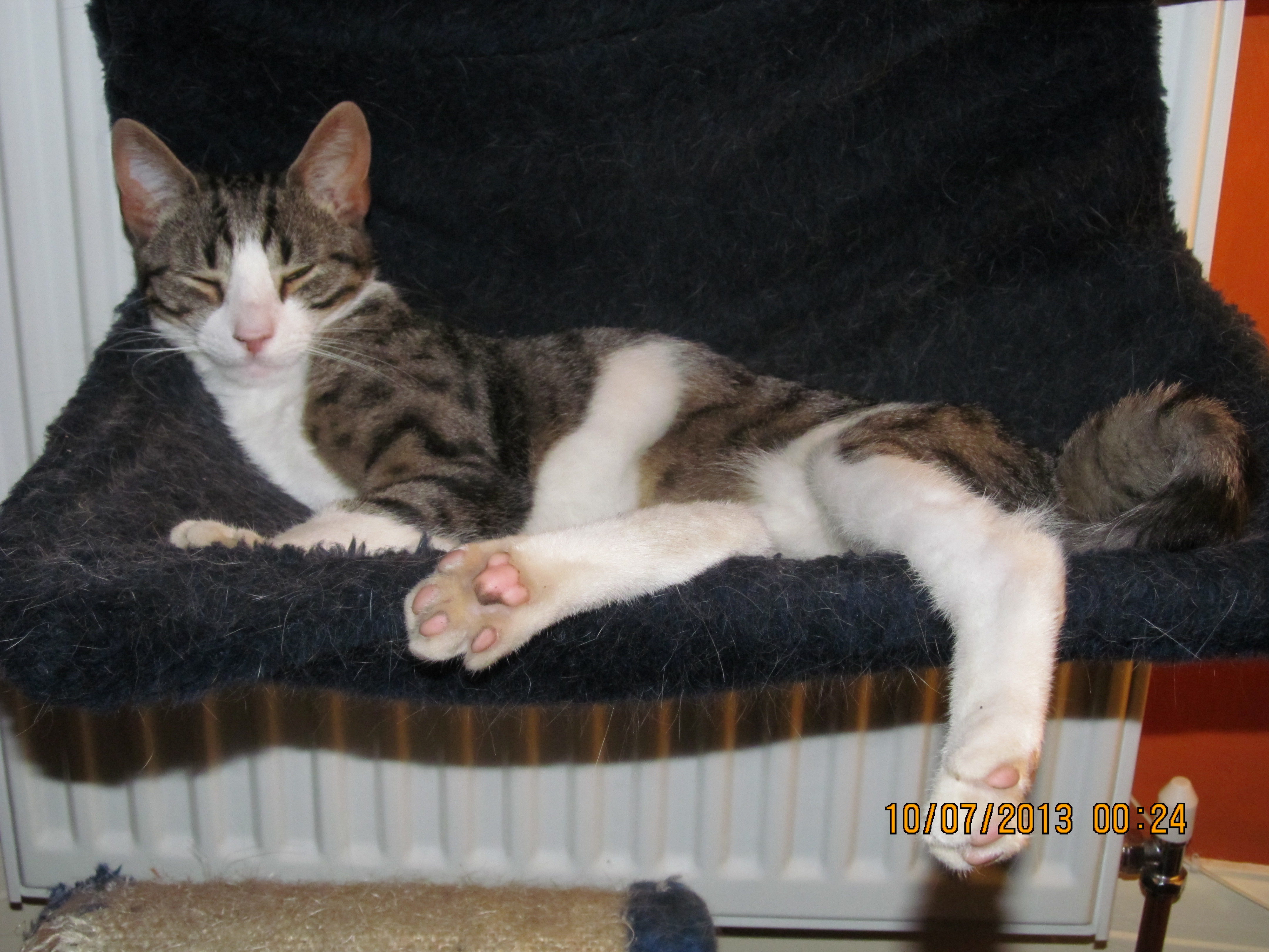 We have a busy week. All of Smudge’s kittens have been reserved and will be starting to go to their new homes this weekend. I can’t believe how grown up they suddenly are. Morris is also off to his new home tomorrow. He’d spent months in the cattery and was very timid when he came to me. However, he’s grown in confidence especially since his new family came to meet him a couple of weeks ago … and now they’re back from their holiday he can’t wait to move in and take control of the house. He has his suitcase packed and is very excited since he heard that he already has some post there. I suspect its a pets@home voucher so he’ll be instructing his new mum and dad to work through his wish list of toys and treats. Top of the list is a hammock