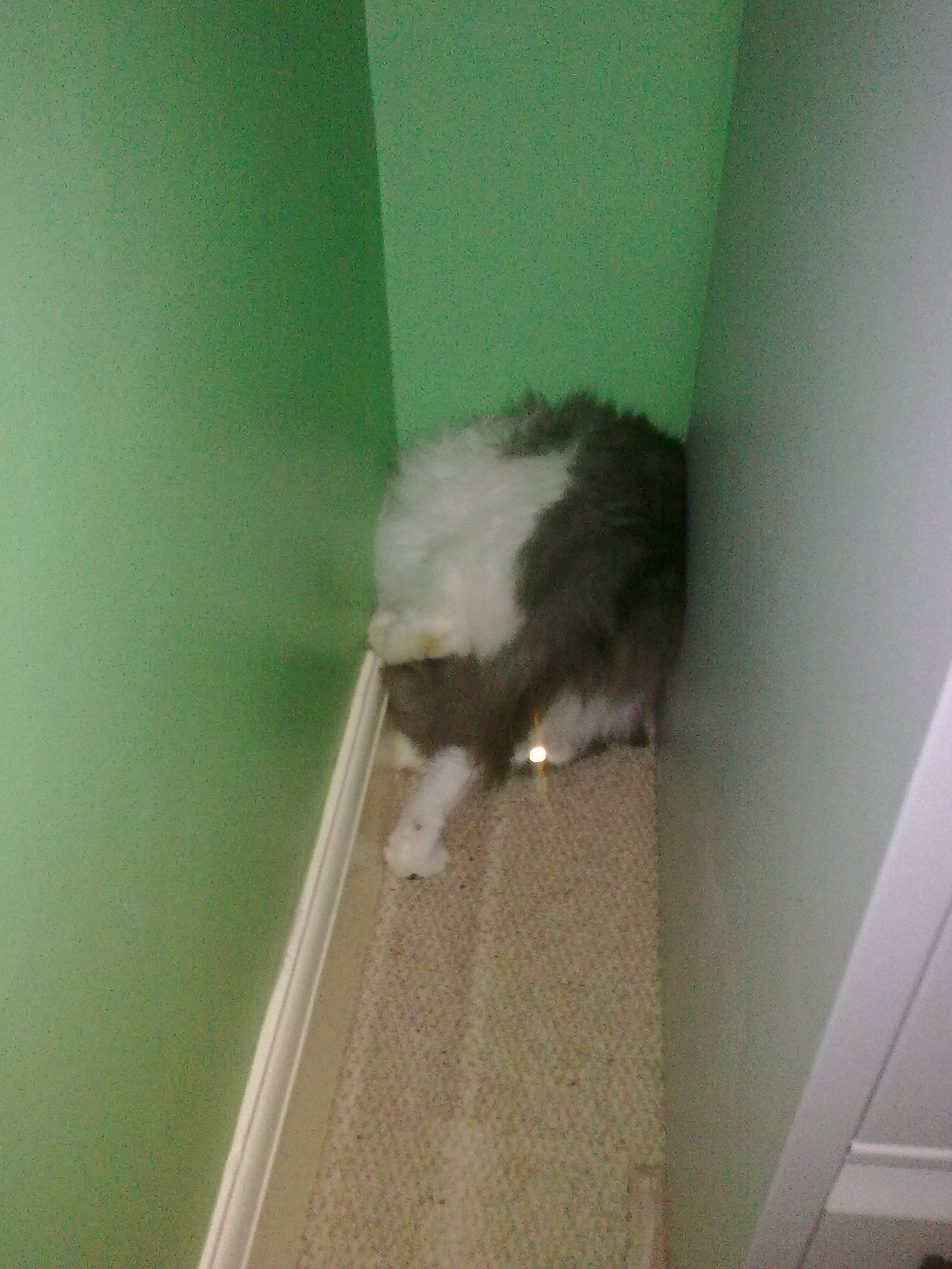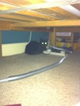 but was found wedged behind the toilet. Similarly after Bailey, Barney and Bella arrived, I went up to check on them and one of them was gone – found later to have slid under the chest of drawers.
