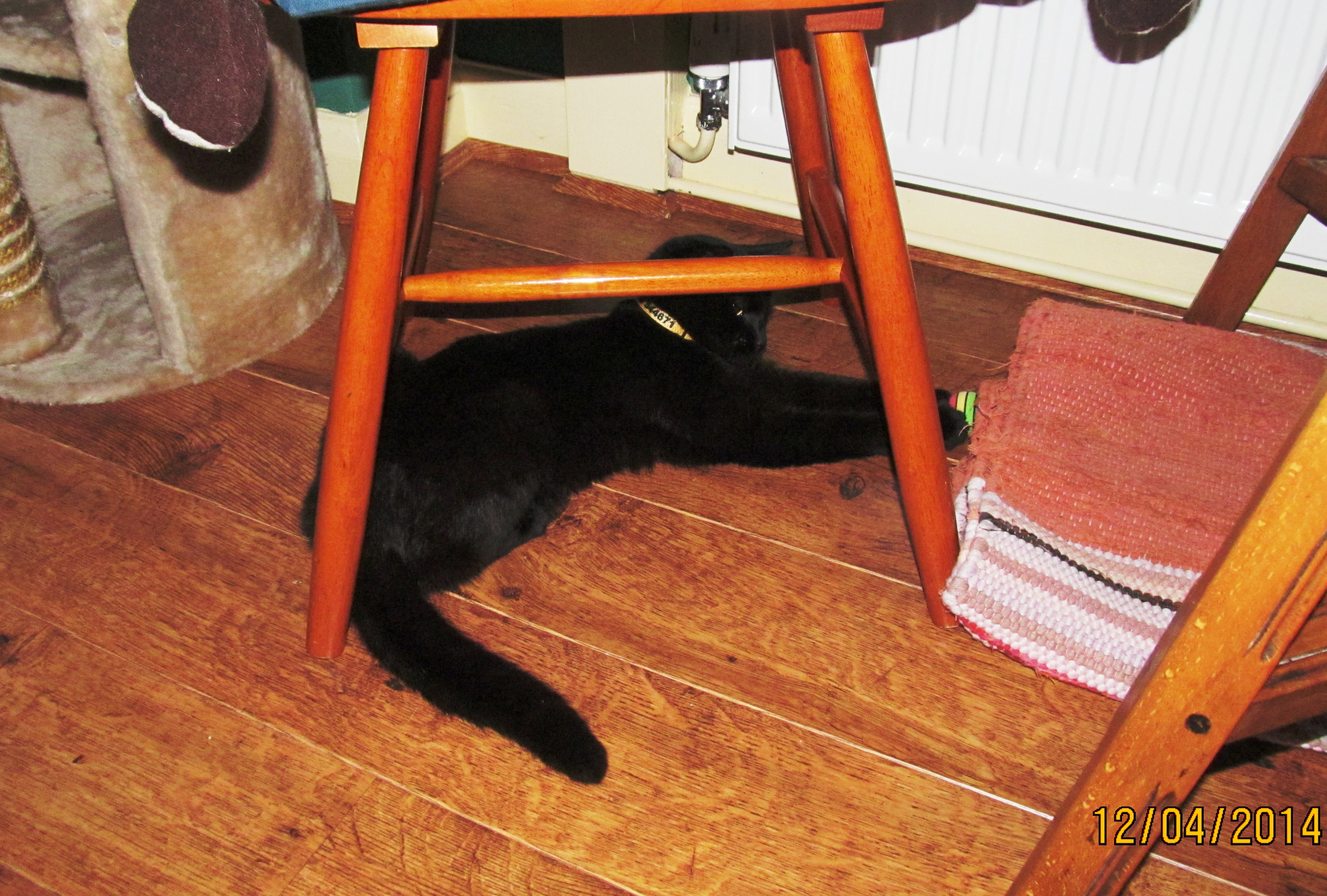 Mowgli hid under the chair most of the time they were there, and ignored them and the toys they brought him. I think once they’d gone it sank in that they’d offered him a lovely new home away from my hissy spitty residents … and he started asking lots of questions, getting excited, and playing with his new toys.