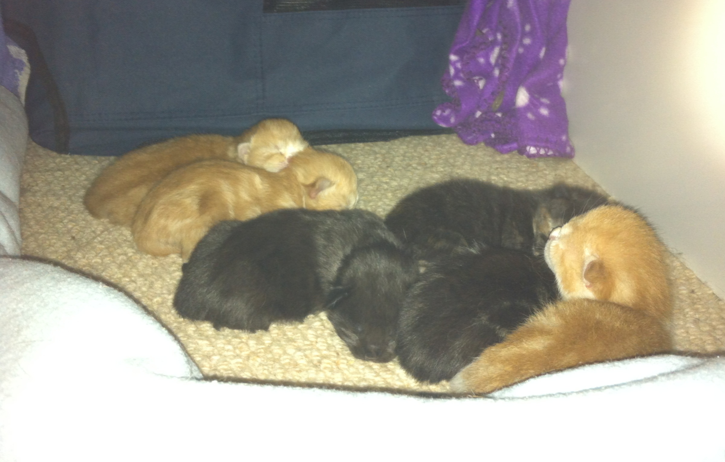 So apart from Bosca who seems to be getting her paws well and truly under the table, the house was empty of rescue cats over the holiday. My lovely friend Kath had had taken care of Tilly while I was away, and been there for her when she had her little ones. She was there for me when I arrived back jet lagged and hysterical about Sooty’s disappearance, and hung on to Tilly and family for me until the following weekend when I was sorted out and ready to take them home. So they arrived back here a couple of weeks ago, aged just 7 days old.