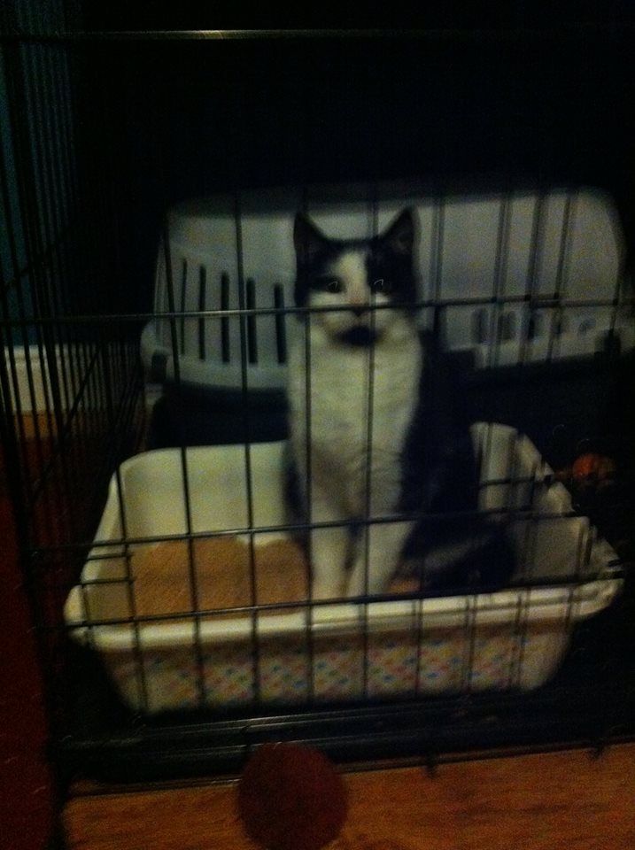 Although we currently only have 10 cats, the number requiring single rooms means that we’re completely full. Domino and Dizzie each have one of the cat rooms to themselves. Poor Dizzie would be happy to share, and I think has missed his mate Edward since he went to his new home, but no one wants to share with him. Domino is happy to nip into his bedroom at meal times and steal his dinner but hisses at him if he tries to make conversation.