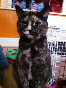 Her first challenge was to be able to get into the bed with all 5 of them without sitting on one of them. She’d clamber in, settle herself down only to find one or two of them squealing and trying to wriggle out from under her. Standing up and weighing up the situation, she’d turn round a bit, then settle down again, this time squashing the other kits. She was clearly flummoxed by it and decided the best plan was to stay out the bed most of the time, and just pop in occasionally to feed … but stay sitting up …so she didn’t crush anyone.
