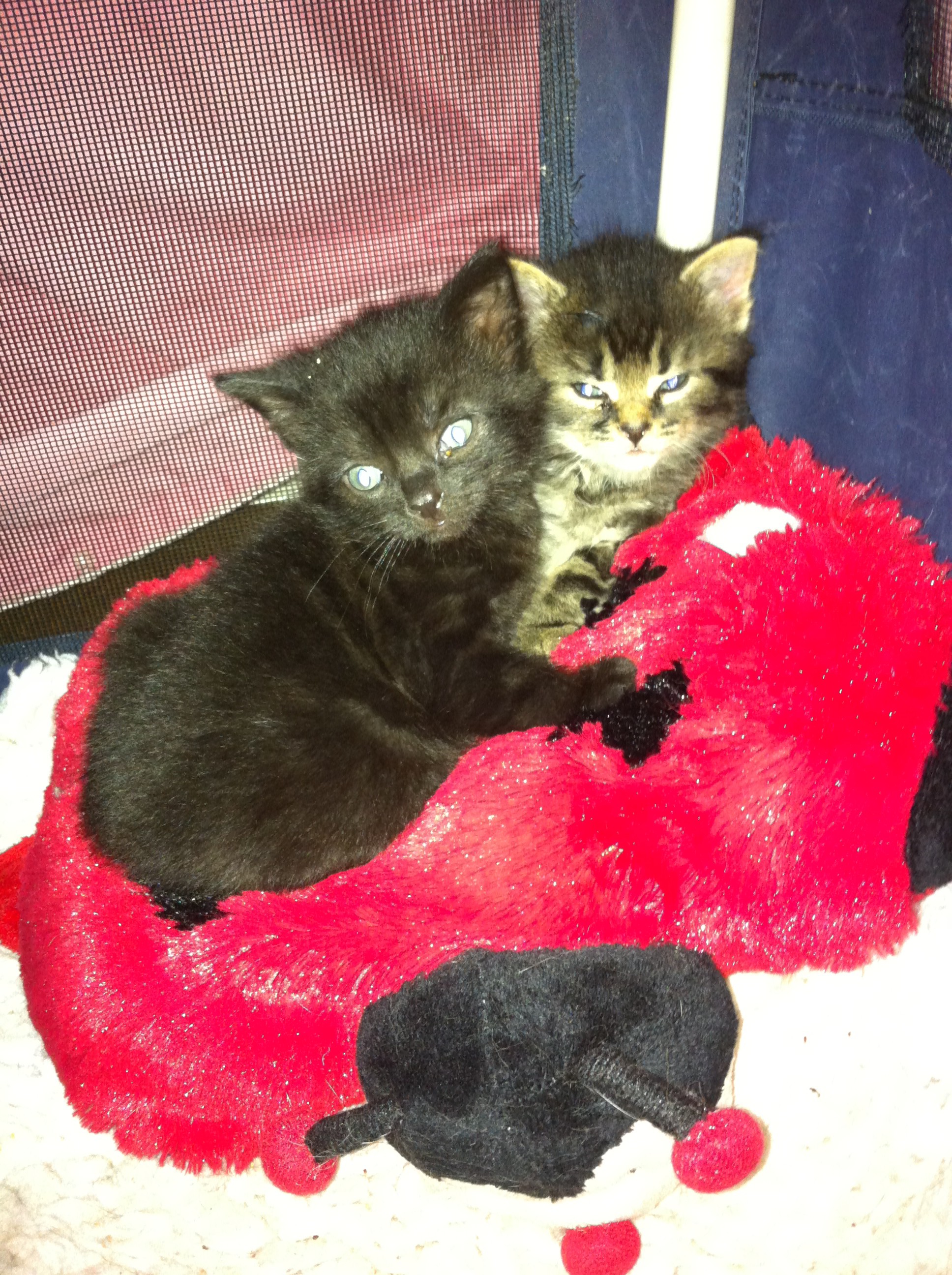 We’re full and over full of course … However a couple of Sunday mornings ago, as I was dozing off for a nap after a bad night on the couch, facebook pinged asking if we could take two young kittens with no mummy. Within 30 minutes I was in the car going to collect them … from the other side of Doncaster. Things with rescue tend to happen quickly … but when its kittens who aren’t weaned and have no mummy it has to happen even faster … faster than I can logically think about where we can put them…. but hey ho …..