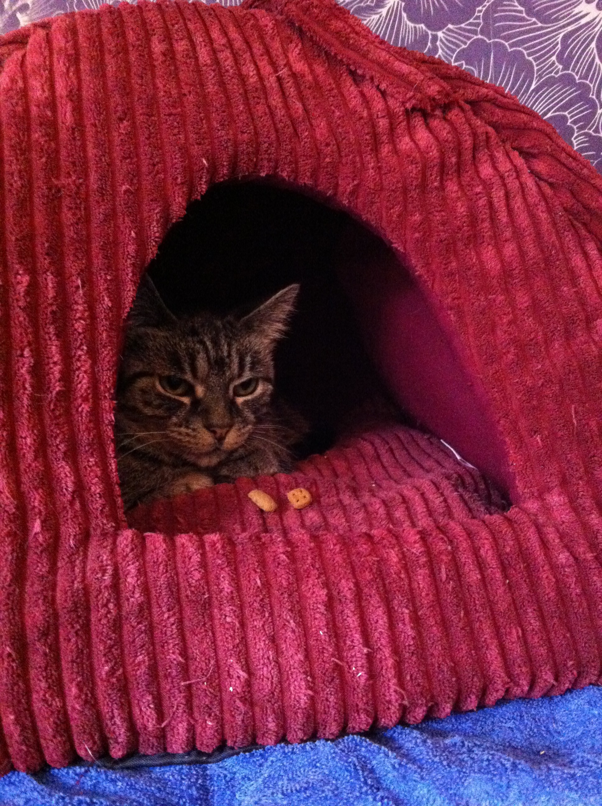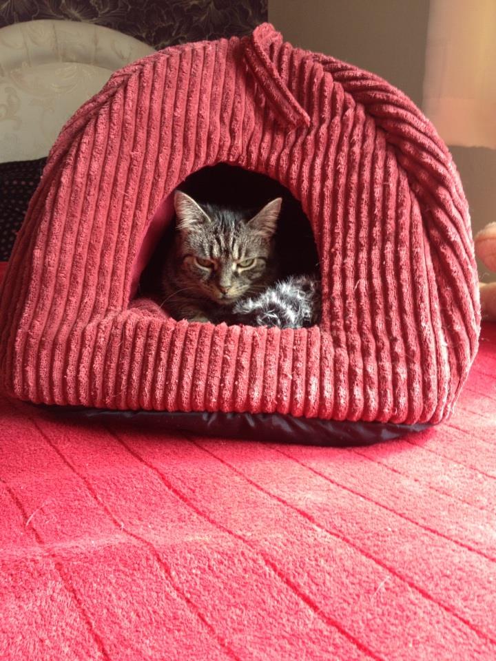 Before her first week was over, the crate had gone and she was exploring the rest of the house. Still with the security of Uncle Bob’s trusty igloo to return to