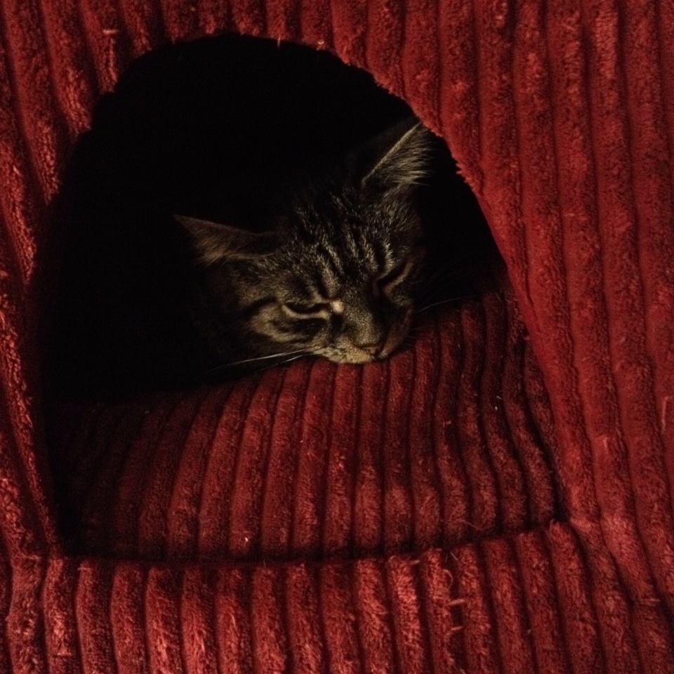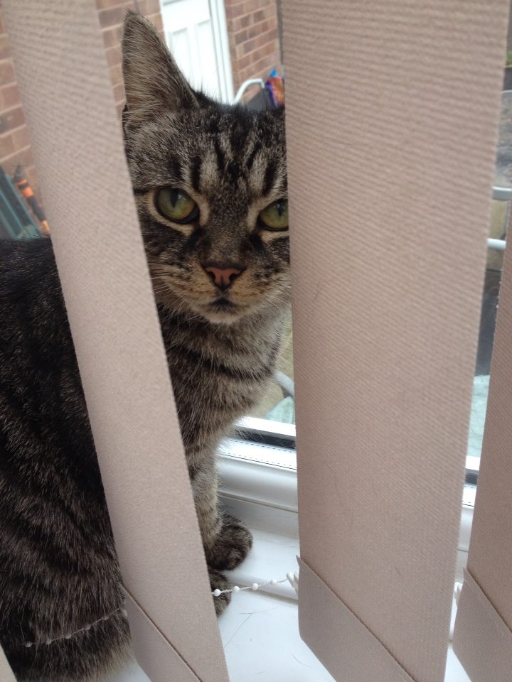 So we explained it all to Maya, who as you can see was very interested in the plan. Unfortunately, like Gertie in our previous story, although she was delighted with the idea of the destination, she hadn’t quite factored in the trauma of the journey. This is a little cat who had been slowly gaining confidence but still couldn’t really be touched easily, and certainly wasn’t ready to sign up to being put in a cat carrier. We tried to grab her in a towel but she slid out like soap in the bath and was away, behind the desk, round the side of poor old Gertie’s crate. Way too much stuff in that room to make it an easy capture. Furniture taken out and piled on landing. May scuttled into the hidey hole on her cat tree and glued herself to the back of it. Cat tree unfastened from the wall …. and moments later I’m lying on the floor with an open carrier on my stomach whilst Jenny tips the cat tree up with the hidey box over the carrier desperately trying to get Maya to let go. It doesn’t work, I get more anxious and stressed. Jenny puts on the motorbike gloves that were kindly donated to us when we had to get May to the vet for her spay op, and tries much more bravely than I would have, to get Maya to come out. Eventually Maya rushes out and onto the windowsill and I corner her with the carrier and slam it shut. Once cat is safe in carrier I burst into tears … distraught about having put such a frightened puss through all this trauma and worried sick it would set her back. Poor Jenny then torn between trying to sort out me and cat.