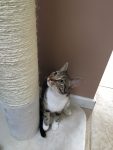 So that left us with just 7 cats …. the fewest we’ve had in I can’t remember how long. Not only the fewest . … but 7 cats who all get along reasonably well, so none of them need to be in a separate room. That got us to thinking …. what better time to attempt to decorate the ‘cat’ rooms. Hmmm … you may say ….. a better time might be a time when there aren’t builders demolishing the back of the house, a time when everything else isn’t in chaos. However, when the building is finished we’ll be coming into kitten season and need to have rescue spaces to offer. So we completely emptied one of the rooms and piled everything in the other, cleaned and sanded and then went to B&Q (other DIY stores are available) to buy paint ……