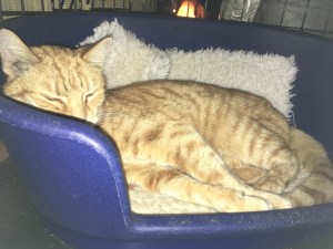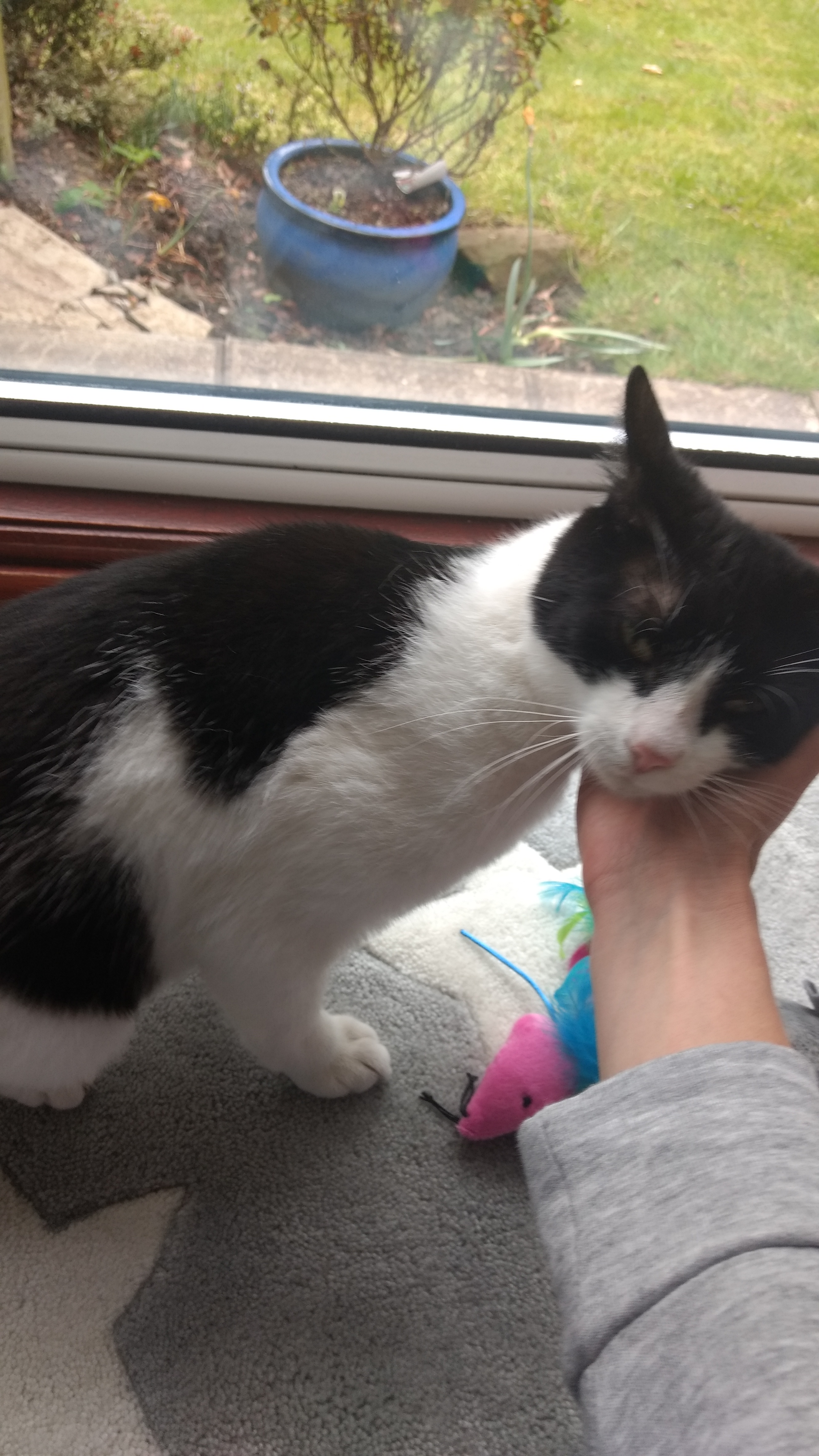 He comes out and has some breakfast and we’re back on track. Except Amber doesn’t seem very well. She’s our semi feral who can’t normally be touched. I go to look at her and she lets me stroke her. Is this good? Stress again and no photos. All fed watered and cleaned we go off to new home with Jenson. That goes well. Lovely family, excited though slightly nervous Jenson.
