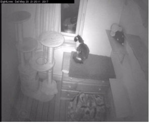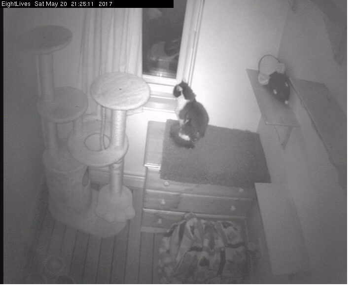 Very grateful to our vets for keeping Albie overnight to neuter in the morning rather than our having to face trying to catch him again for another vet trip. Not neutered, not chipped, coat full of matts, and enough passengers on board to start a small zoo. We hoped he’d settle a bit when he came home from the vets but he’s determinedly hiding in his cat tree when there’s any sound of people around. We only know he comes out thanks to Uncle Alan and his brilliant webcam. Within the house we can watch a live stream of what’s happening in his room. Everyone else can see a still shot taken every few minutes on our website here: http://www.8livescatrescue.org/content.php?page=cam