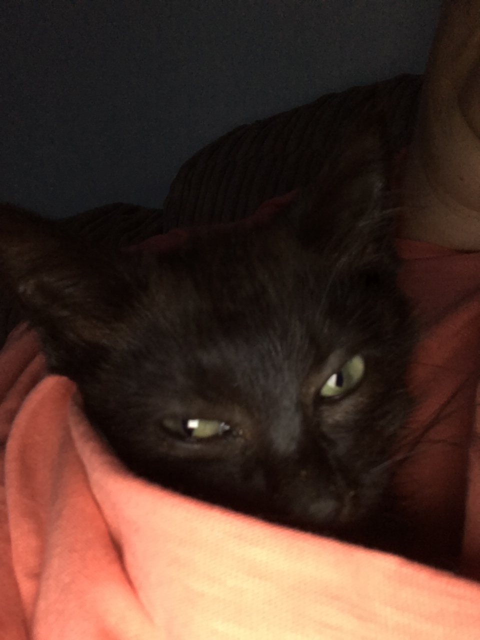 Did she get louder and more unsettled after the fit, or was it just me who was more anxious and interpreting things differently? For a kitten with weakness in almost every other aspect, I can testify that there is nothing at all weak about her voice. She can yell as loud and long as 6 other kittens put together. It’s as well really since she needs to summon help for most things – if she’s hungry/thirsty, needs help getting into the litter tray, or moving around. Working out what she needs isn’t easy. After we’ve checked she’s not trapped somewhere, bottom is clean, doesn’t want food /bottle, put her on the litter tray, its seems she just wants company / cuddles / comfort. Thankfully some of the other cats have helped with this, but in the end, I made a sling out of an XXL size T shirt so she could still cuddle but I could get on with things.