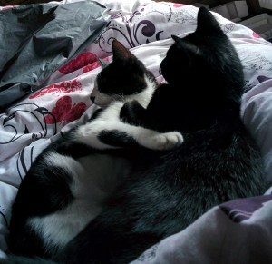 I can’t imagine life without our two wonderul cats. They still snuggle up together and groom each other big as they are and there are rumers that Simon may soon be reading this blog!