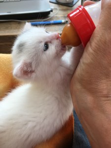 Her feeds have changed from gently trying to get the teat into her mouth and encourage her to have a few ml to her squealin when hungry, almost grabbing the bottle out of my hands and drinking it nearly dry before coming up for air. Check out the ears!