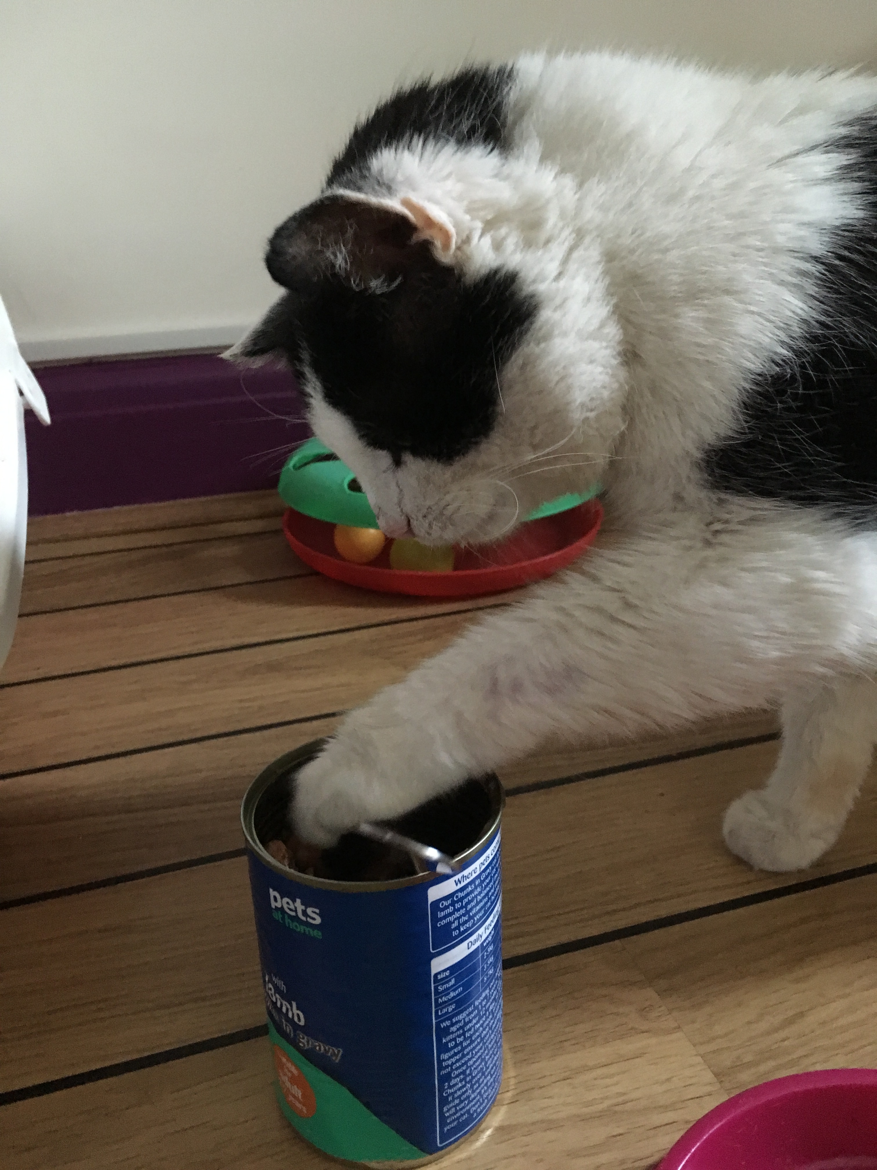 So we had Paul’s room free and set about the next priority of trapping Stanlie. Stanlie is a stray who camps around our estate. We’ve been feeding him for a while and his trust in us (and our neighbour) has grown gradually over the last few months. He spends a lot of time sitting in our neighbour’s garden trying to fathom out my shift patterns … and as he’s got more confident, complaining loudly at me when I get back late.