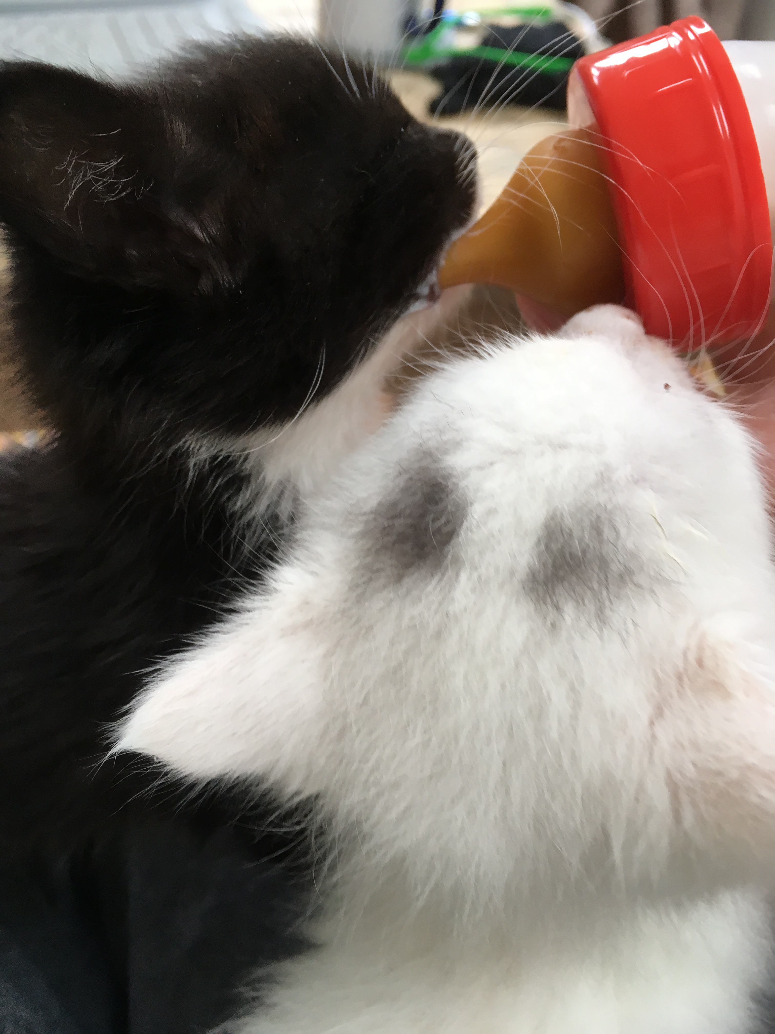 Bottle feeding baby animals is often romanticized. It’s certainly very rewarding. It’s also damned hard work. Very young kittens need feeding every 2-3 hours, bottles etc need to be sterilised, formula made up. They need toileting and cleaning ideally before and and after feeds. As with bringing up any species … as one challenge is met and moved on from, another is faced. When we hand reared our last kitten, Rufus, a couple of years ago, we’d never have managed without his aunty Jenny and uncle Rog to share the care.