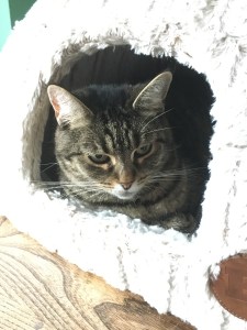 So it was a shock last week when she suddenly didn’t turn in to work one morning. I found her sitting downstairs in Henderson’s favourite igloo. That’s a whole other issue which needs to be dealt with outside of work. Long and short of it is that I washed the igloo, and maintain that I did this with good reason, however it’s upset the whole eco system of the house. Despite it having been one of Henderson’s favourite hang outs, second only to the heat pad on the sofa, he now refuses to set foot in it. Turf wars between Rowan and Flipper have ensued. Anyway, I digress. She claimed to be off sick with hairballs.