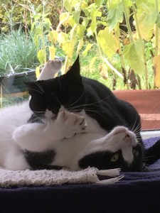 The following day she was simply absent. She didn’t call in sick, she just wasn’t there. She wasn’t in the igloo, or on her perch in the bedroom window, or out in the garden, or nudging Hendo off his heat pad on the sofa. She wasn’t on the shelf near the treats waiting hopefully, she wasn’t on the bed with Honey. She wasn’t even under the bed, which is favourite spot for coughing up hair balls. I’m not sure what made me think to open the wardrobe door … but …