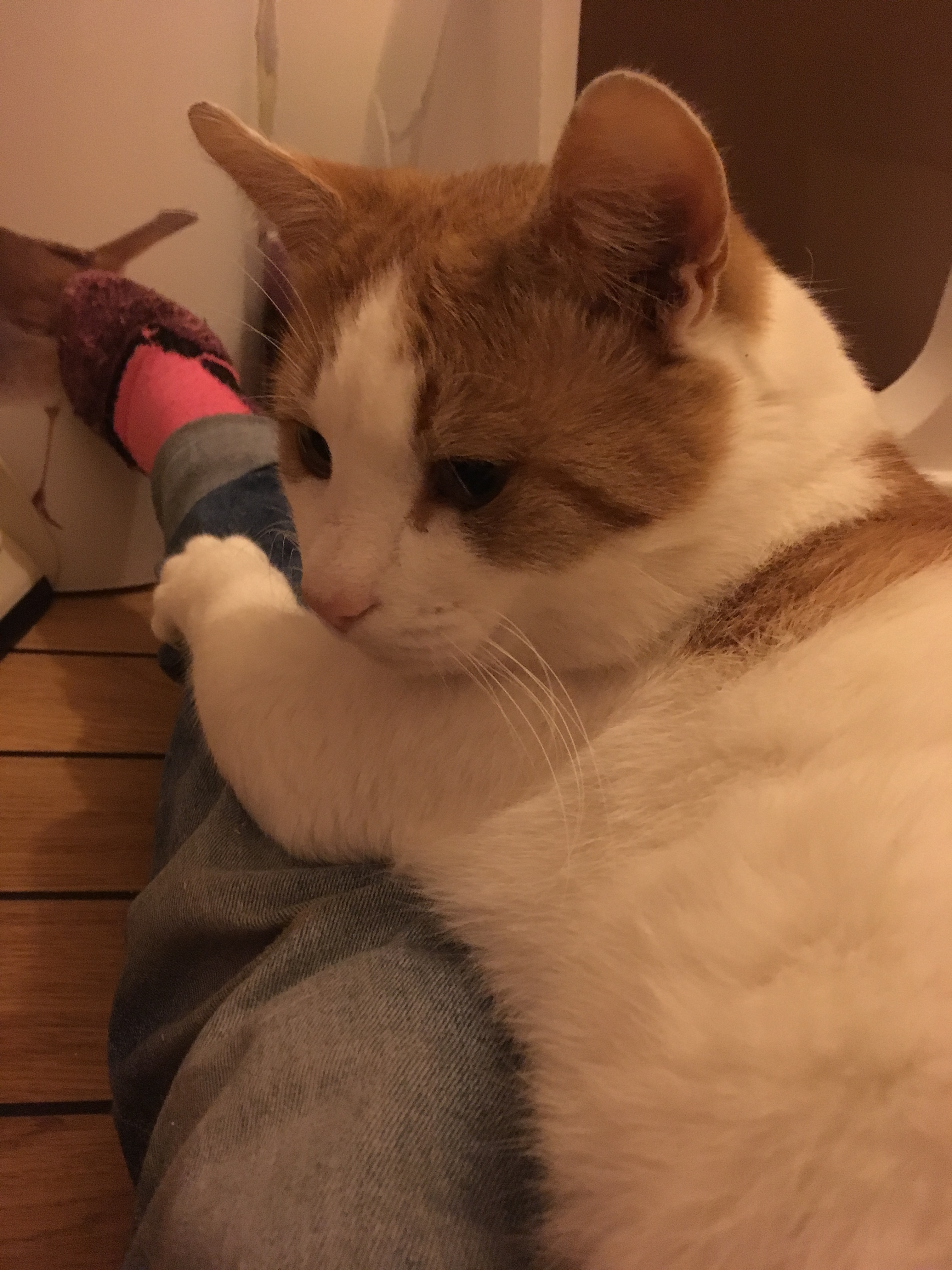 Bugis came to us just before bonfire night. We believe he’d been abandoned some months ago and had lived in someone’s garden for a while. It was kind of ok over the summer when it was warm and he was being fed but as the nights got colder and the fireworks started banging it wasn’t so good. He seemed genuinely grateful to get indoors here in the warm and away from all the noise. The family who’s garden he was living in made extensive searches to find who he belonged to before getting him a rescue place, and we’ve also searched … but no one has claimed him.
