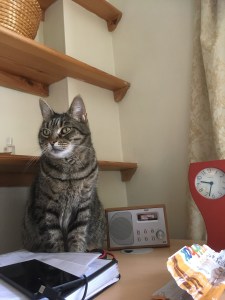 It’s one thing having her participate in meetings with colleagues.  We all have our own crosses to bear with pets or kids showing us up.  The more tricky part has been phone conversations with clients.   She has an opinion on everything that’s discussed ….  from care provision at the other side of the county to employment law overseas … and is determined to put in her two penneth.   At times it can be an amusing, levelling experience … at others it’s deeply embarassing.   It’s not easy to remain professional with one hand clamped around her muzzle.   Late afternoon appointments are often interupted by her shouting loudly into the microphone  … “I wont my T now!”.   In over 25 years experience I thought I’d encountered just about everything this job could throw at me.   However a hungry and very vocal cat is something I never bargained for.
