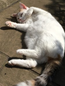 Things settled back to ‘normal’ after that episode.   The kittens got over their vet visit … eventually … and went back to playing.  The others went and flopped in the garden in the sunshine.