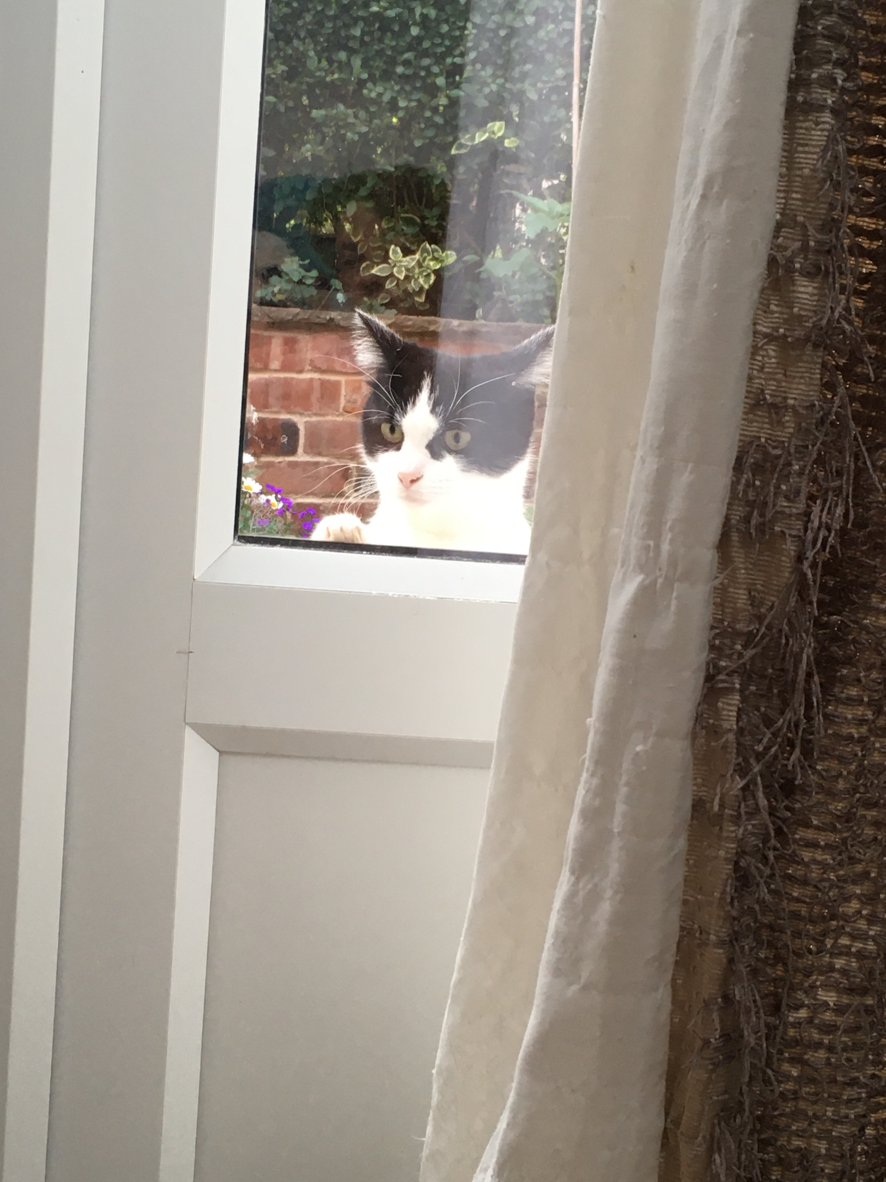 I have a garden, which is the BEST PLACE, but the hoomans never let me go out by myself. Sometimes I sit looking at the top of the 6ft fence. It’s too high for me to get up there, but the hoomans don’t know that, so it spooks them which is fun. Outside I have lots of places to sit – some in the sun and some in the shade. I wish the hoomans would bring my tunnel outside, but they don’t. That’s disappointing, and I must talk to them about it. Another training need.