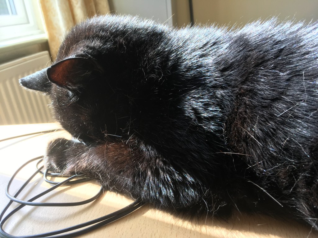 She’s a keen participant in Microsoft Teams meetings too.   I think everyone in our in Team is now familiar with the sight of her bottom.   The week we decided to use virtual backgrounds she chose to sit in that liminal space which allowed her to appear and disppear like the flippin Cheshire cat, randomly waving a disembodied tail in my face.