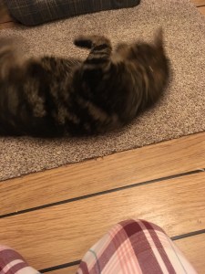 We had to be careful with the “teenagers” who were a little over enthusiastic with the head bumps and nearly knocked him off his feet. At one point I think he only stayed upright through Dasher’s head bump because Kevin was doing the same on the other side …. equal and opposite forces and all that. Everyone was pleased to have him home … he’s a very popular cat.