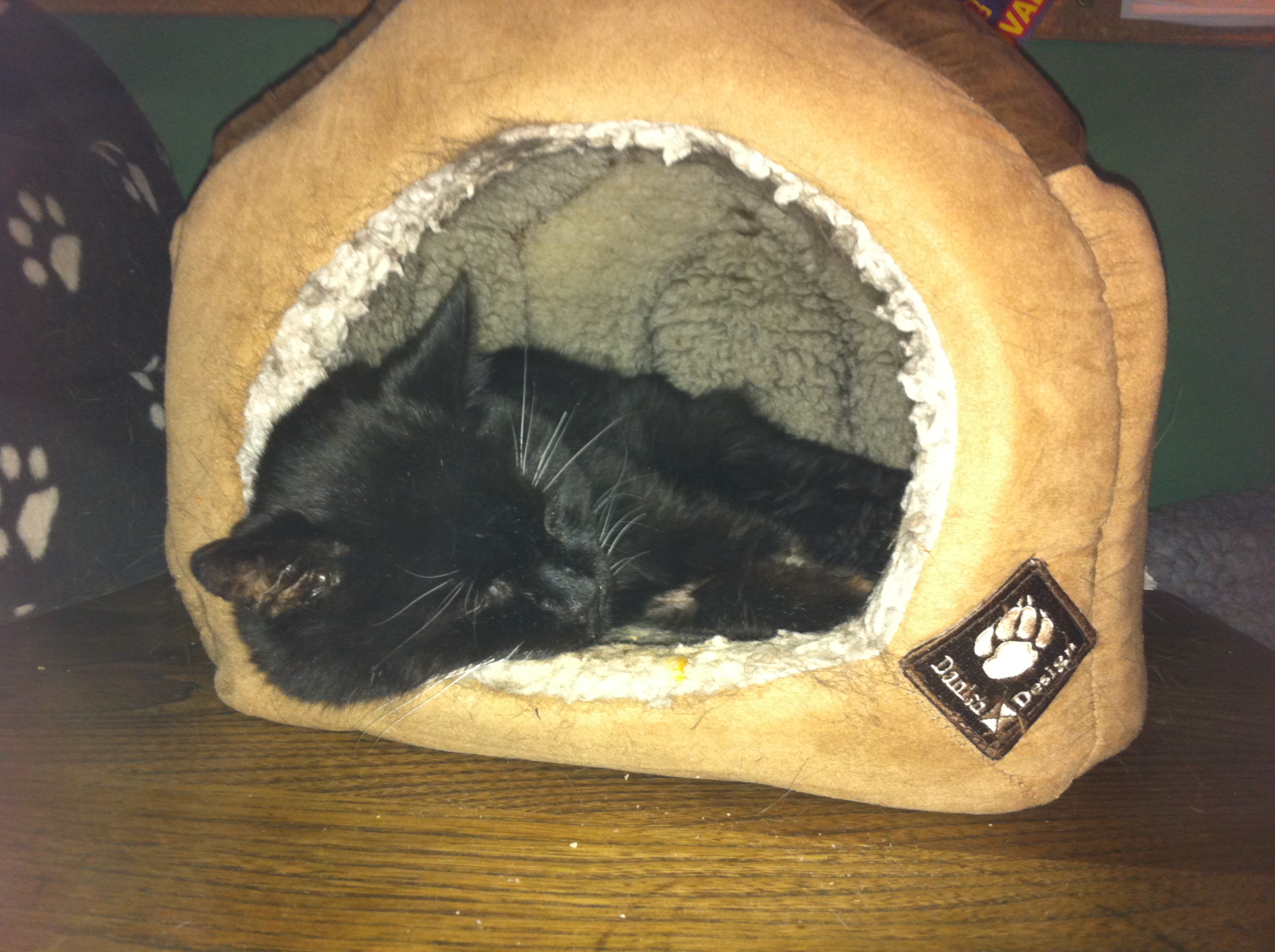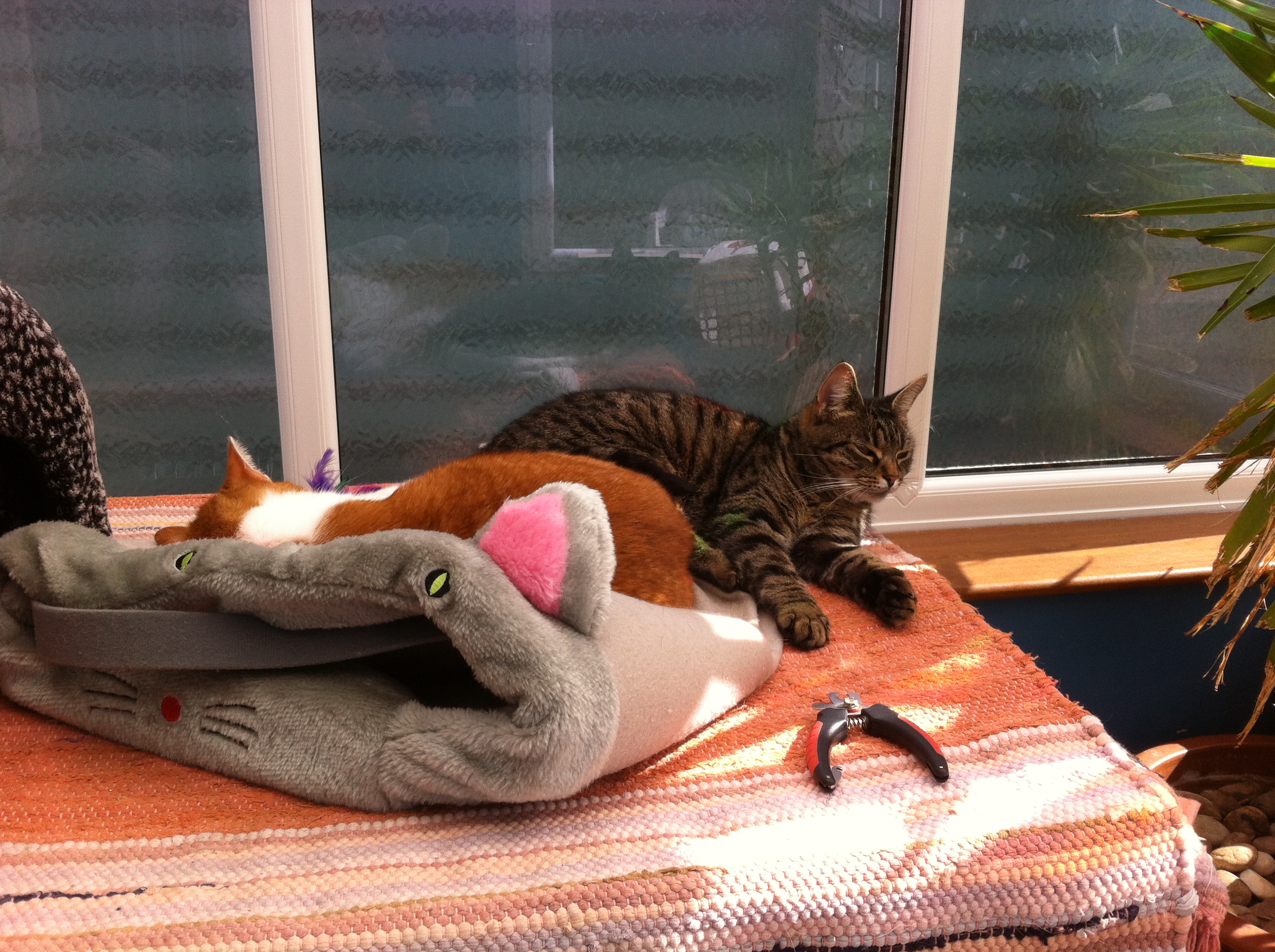 Rightly or wrongly the clocks don’t stop for a bereavement, and time marches relentlessly on. The residents don’t say a lot, but have clearly been affected by the loss. Sleeping places have changed. Whilst Sooty was alive, and clearly top cat despite his failing health, there was a competition for who could sleep in his little house/bed. Now it remains empty apart from the fur ..