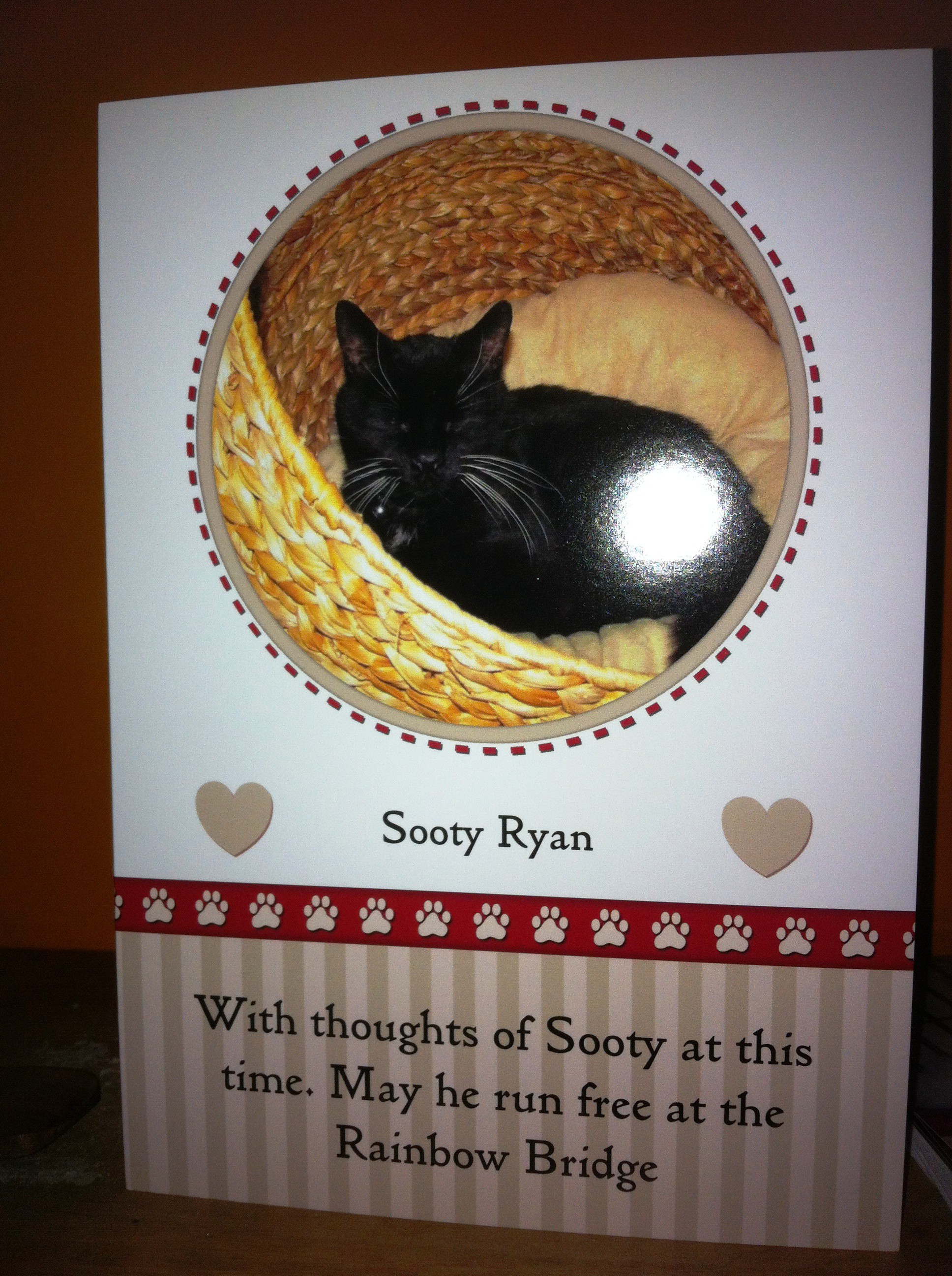 I was really touched by how many of our ex residents invited us for purrs and snuggles to try to ease the pain. I didn’t want to go and soak their lovely fur with tears but the offer was very much appreciated. Lovely Peppa even sent a card from her new home in America.