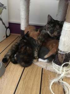 You may remember Hecate who arrived here with 4 x 3 day old kits almost exactly a year ago. She was very scared and reluctant to allow us to interact with the kits, and her anxiety rubbed off on them. It’s all good now … mum and kits all in loving homes and confident and settled .. but it was hard work and ideally not something we want to repeat.