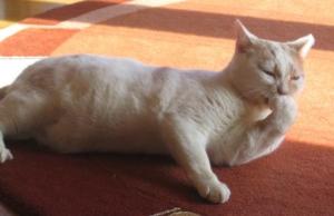 The two cats have very different personalities. Minnie is always the one to take the lead when new humans visit while Simon runs for cover. This was especially so when my one year old nephew came visiting. Simon retired to the attic and could only be coaxed down late at night. Minnie however was in the thick of the action including curling up round his feet during a tantrum moving her tail out of the way of his stamping when needed.