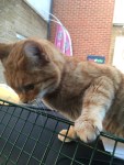Mikey had been living rough in someone’s garden for a few months. He was one of the lucky ones who land in a garden that belongs to someone who cares. They fed him and gave him some shelter and contacted Beverley who went out to scan him for a microchip. Sadly he wasn’t chipped and no one was responding to “Found Cat” adverts . Beverley got him on waiting lists for several local rescues … and they waited .. and waited. So many cats find themselves in similar or much worse situations. This one got a whole lot worse when local kids started to push poor Mikey around, so she spread the net wider to include rescues that are further away. The amazing facebook cat rescue network did what it does so well and found space here.