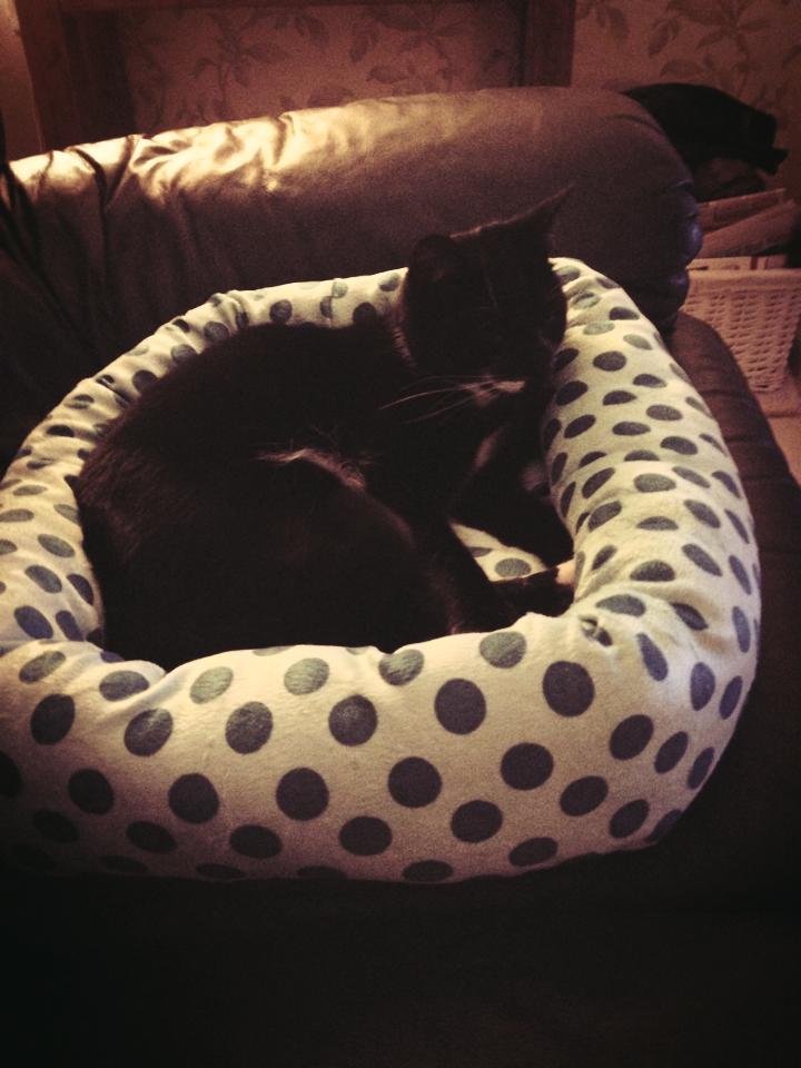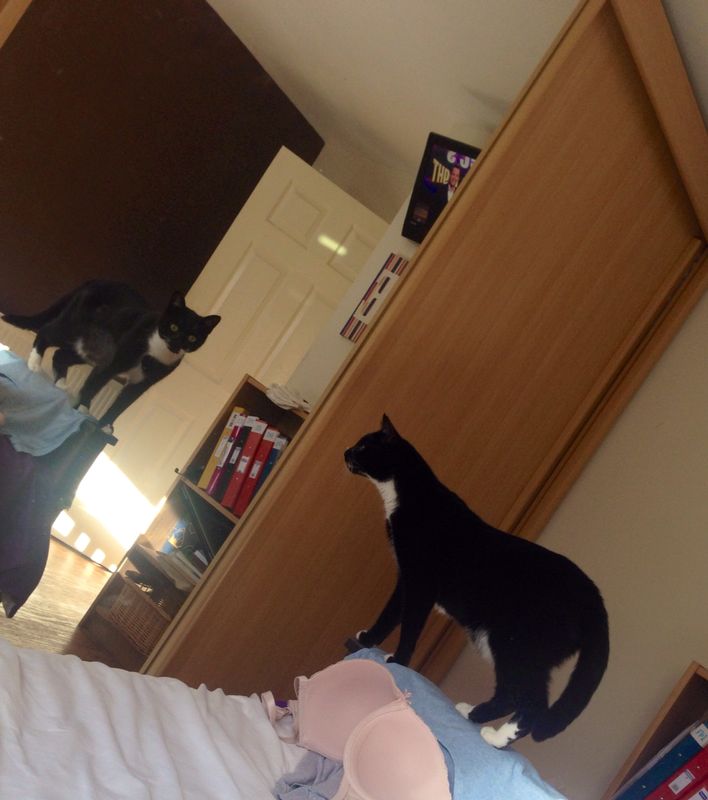 “Merlin is a young lively male who loves to be around people but also loves his space to retreat into. He has had a rough start and this sometimes materialises in an occasional lash out, but with no claws though, its more of a playful swipe than malicious intent. He did hiss when he first arrived but this has now stopped and we now know where he likes to be touched and where he doesn’t so there is no reason for it to return hopefully. We currently have his base primarily in one room but with the door constantly open so he can roam as he pleases but always has his own pad to go back to. He loves to be stroked and hugged by my 18 year old and he meows outside her room until she gives him attention! He does have a crazy half hour most days where he races around the house and burns off some energy. This is all good fun to watch and perfectly normal and to be expected for a cat this age. He uses a scratching area very frequently and will need a good solid scratching post or board to keep him happy on that front! He is overall friendly and loving but does have a tendency to panic at loud noises or sudden movements. He needs a patient forever owner who will give him time to adjust and find his feet. In just a few days he has become a friendly adorable cat and in a few weeks with a new loving owner he will be a fantastic confident lively feline friend.”