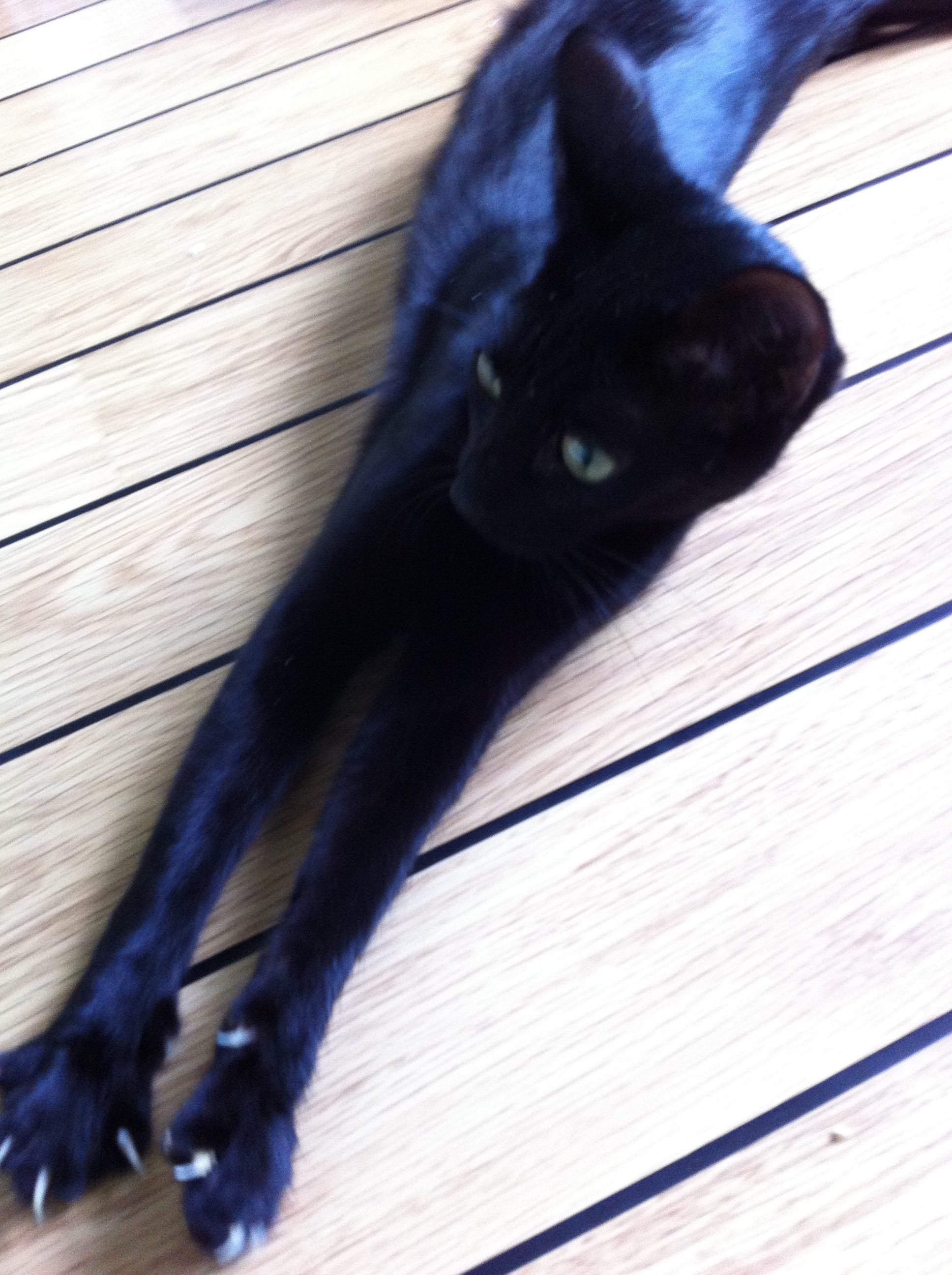 She’s a beautiful, sleek, shiny, oriental looking cat. She’s making no claims to be pedigree but her great aunty (or someone) must have been Siamese to have these looks and voice. Xin is a confident, friendly cat who enjoys a fuss. She’s getting fed up of her kittens (exactly 9 weeks old at the time of writing) and at the same time fiercely protective of them …. so she’s not getting on great with other cats at the moment. It could change once she’s not got her kittens with her and she’s been spayed (booked for Wed 27 July). I understand she lived happily with a dog and children in her previous home.